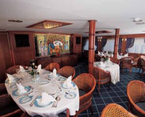 Reception area & Bar with audiovisual equipment. The ship also provides internet corner and library, while you can enjoy a fresh made juice or a refreshing cocktail at the partly shaded sun deck lounge bar.